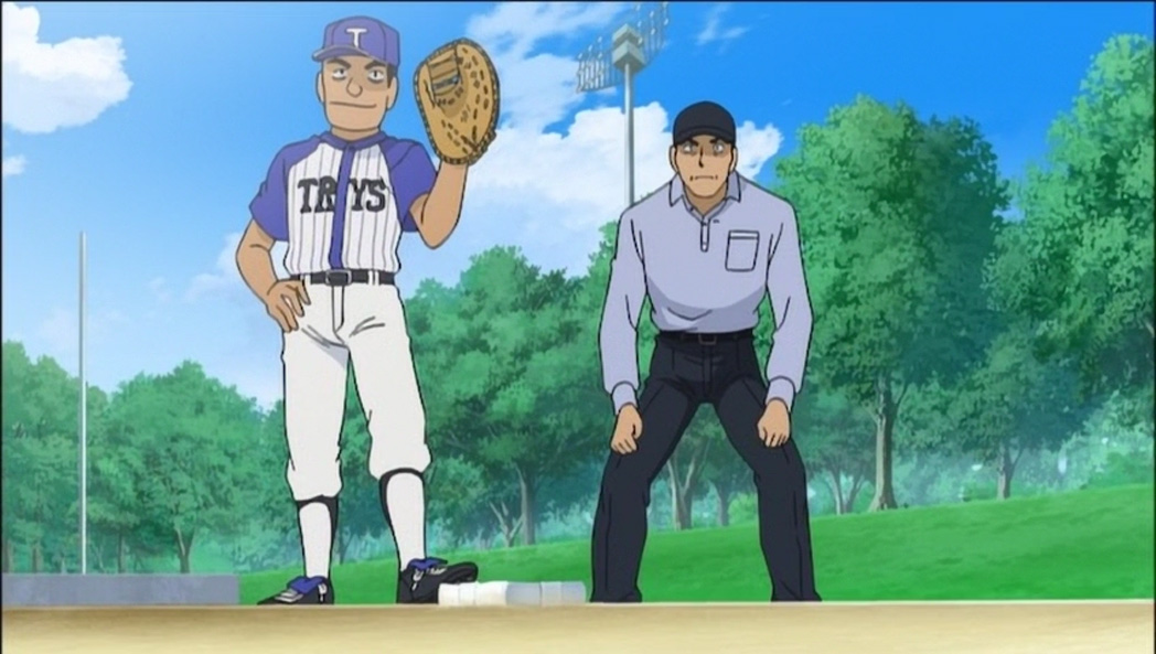 Профессор Агаса просит Конана Эдогаву посетить бейсбольную игру, в которой участвует Минаэ — единственная девушка в команде. Минаэ приходится нелегко, а тренер считает, что ей не хватает уверенности в себе. Направляясь на скамейку запасных, она спотыкается о бейсбольную биту, которую легендарный игрок Мацуи Хидэки когда-то воткнул в землю. Согласно легенде, любой игрок, который сможет достать биту из земли, приобретёт силу настоящего бейсболиста.