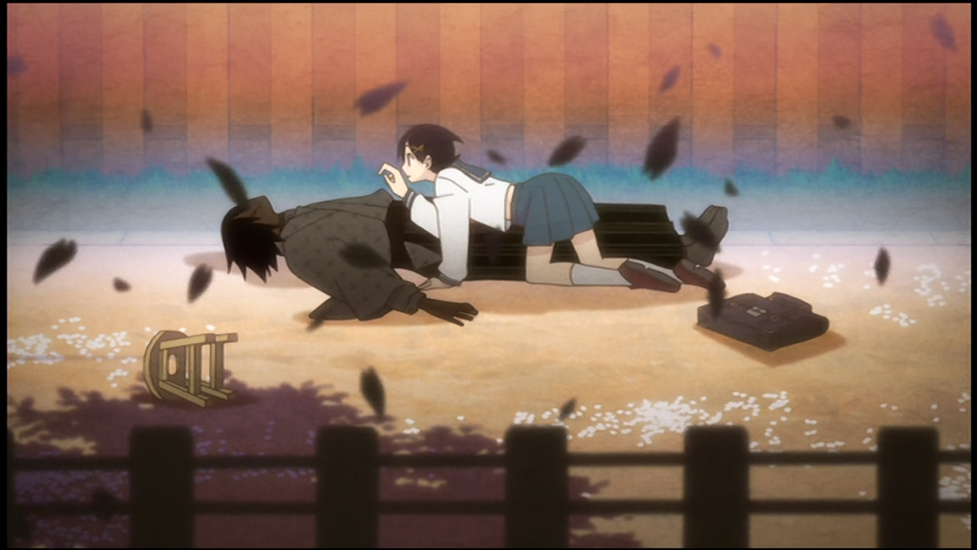 Чем отличается оптимист от пессимиста? Пессимист в кимоно и хакама, решив повеситься на цветущей сакуре, думал, что хуже быть уже не может. Вот только пообщавшись пару минут с одной очень оптимистичной школьницей, понял, что был неправ - самое жуткое в его жизни только начинается. А значит, вешаться рано, надо взойти на Голгофу до конца. И пошел несчастный учитель по имени Нодзому Итосики обратно в школу, знакомиться с новым классом, в котором, конечно же, оказалась та самая девушка...