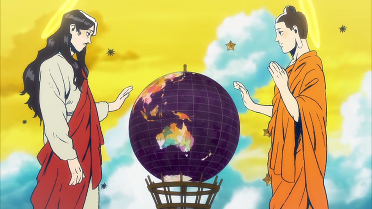 Будда Шакьямуни и Иисус Христос – высшие духовные авторитеты Запада и Востока, божественные учителя и основоположники двух великих мировых религий – захотели отправиться в отпуск. В Европе дурно готовят рис, в Индии тяжелый климат, и поэтому они выбрали Японию. Есть, куда съездить на экскурсии, да и вообще... Главное, найти недорогую квартирку на двоих!